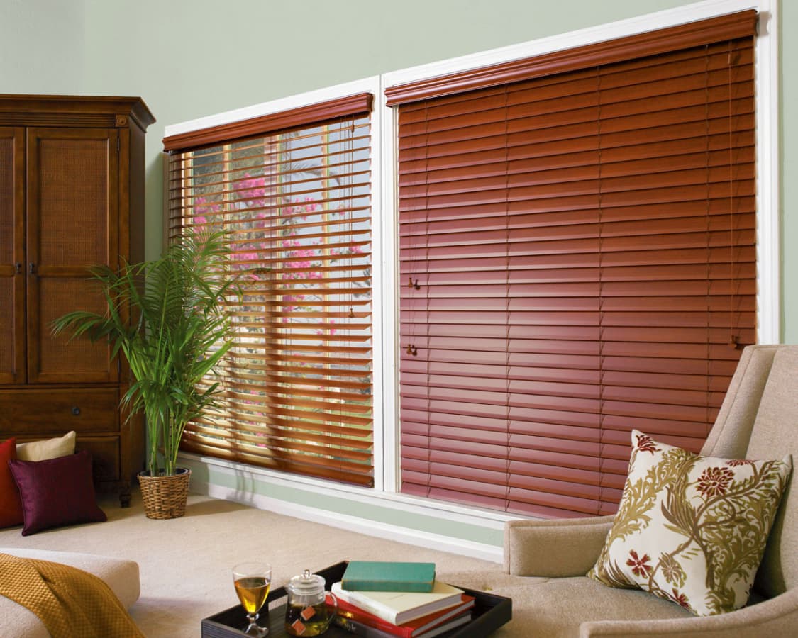 на деревянные жалюзи в гостиную